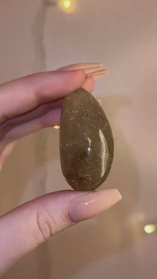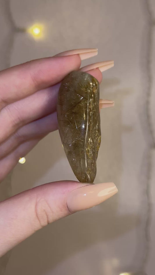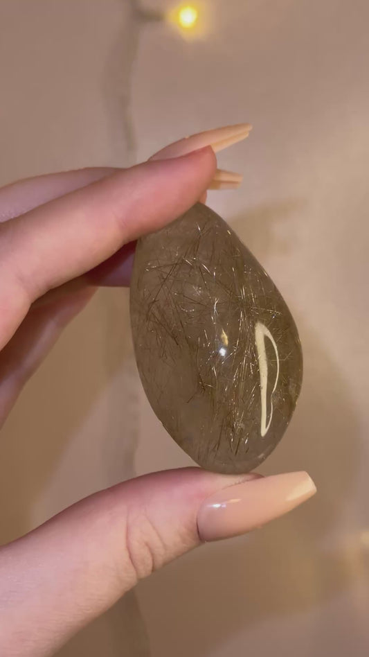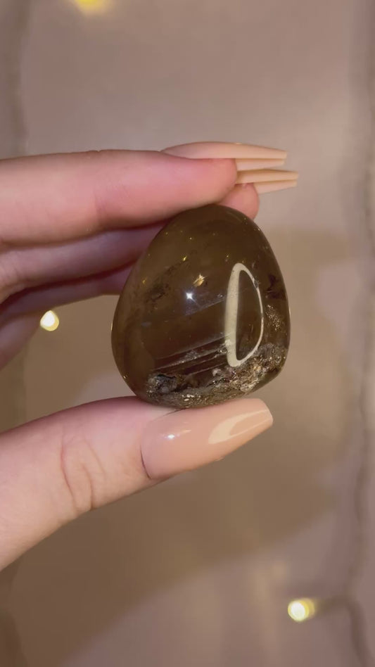 Smoky Brown Garden Quartz Lens w/ Golden Rutile 28