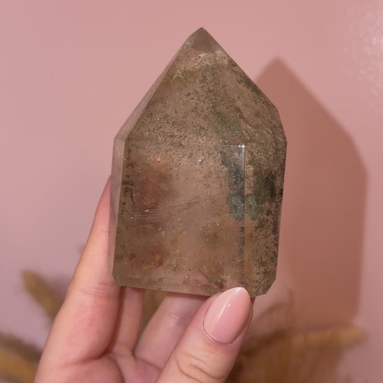 Sparkly Green Chlorite Tower w/ Pink & Brown Garden Quartz